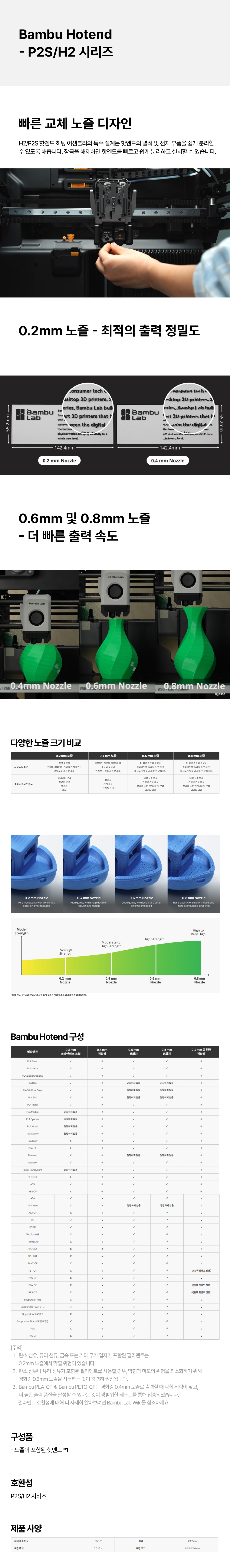 뱀부랩 Bambu Lab 핫엔드 - P2S/H2시리즈 노즐(경화 스틸/스테인리스 스틸)
