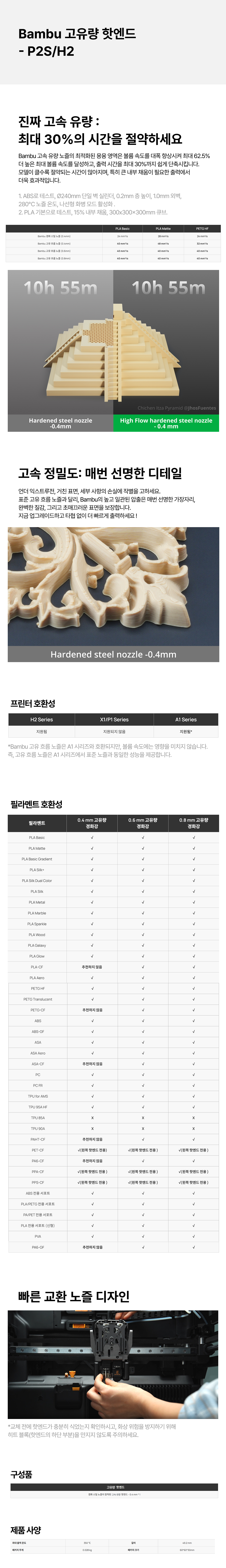 뱀부랩 Bambu Lab 고유량 핫엔드 - P2S/H2시리즈 고유량 노즐(경화 스틸)