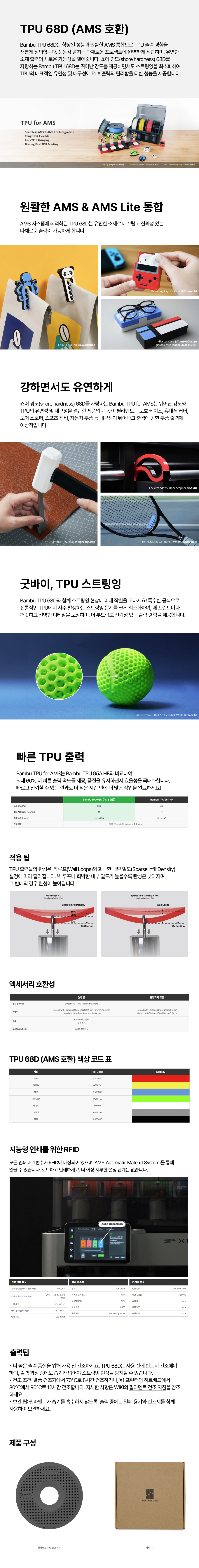 뱀부랩 TPU 68D (TPU for AMS) - 3D 프린터 필라멘트 (1kg, 스풀포함)