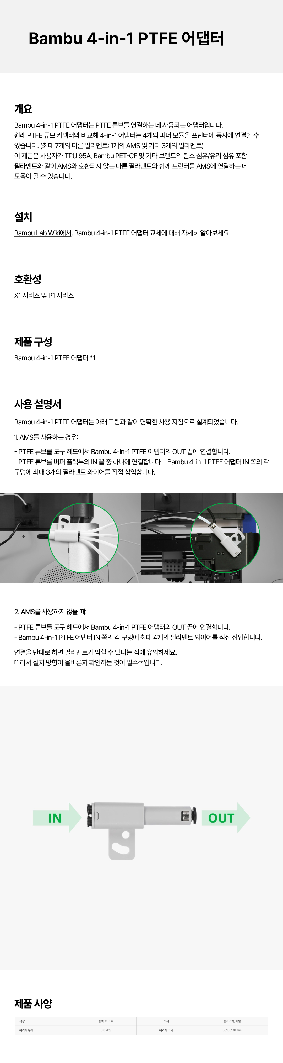 뱀부랩 Bambu Lab Bambu 4-in-1 PTFE 어댑터 (X1시리즈및 P1용)